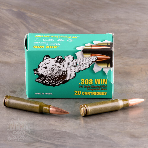 500rds - .308 Brown Bear 145gr. FMJ Ammo