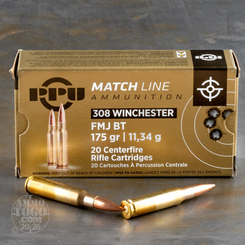 500rds - .308 Prvi Partizan 175gr. Boattail FMJ Match Ammo Details