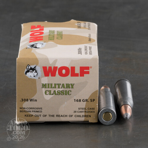 500rds - 308 Wolf Military Classic 168gr. SP Ammo Details
