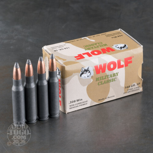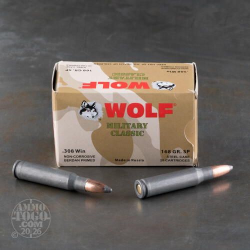 500rds - 308 Wolf Military Classic 168gr. SP Ammo