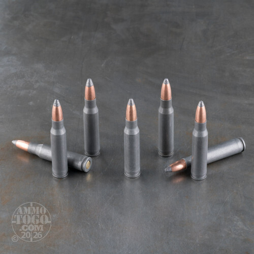 Fans of the CETME or DSA-built FAL will love these .308 Winchester rounds for big game hunting or general purpose plinking. Each round is built using a non-reloadable casing that is made of steel for fewer production costs which pass on savings to the shooter. The case is equipped with a non-corrosive Berdan primer that won't expel any barrel-eating phosphate when fired. Atop the round sits a 168-grain bullet with an exposed lead tip.When the soft point bullet enters a game target, it will experience a controlled rate of expansion which allows it to penetrate through a thick hide and breastplate before slowing in vital areas where it will expend massive kinetic energy. This effort aims to bring down game animals like deer or big predator cats effectively and quickly to preclude unnecessary suffering as well as long treks through the field following blood trails.