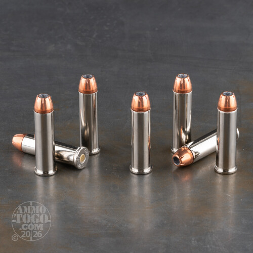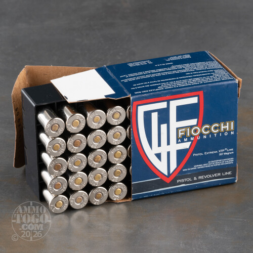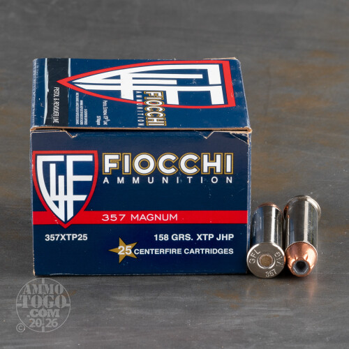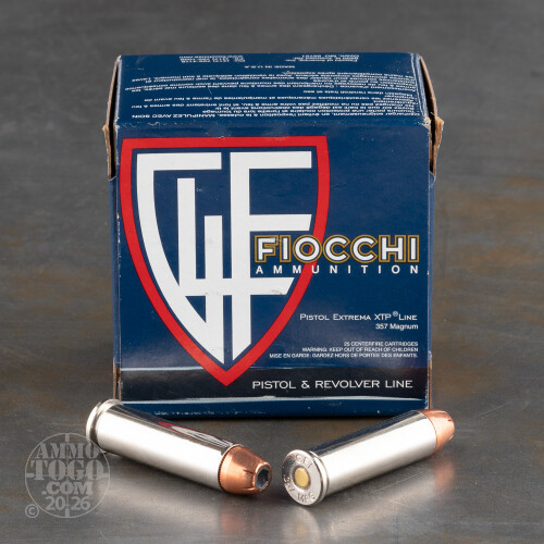 This Fiocchi 357 Magnum ammunition has a 158 grain XTP projectile which is made by Hornady. The XTP bullet is a jacketed hollow point, and has a proven track record of reliable and predictable expansion and is very accurate. The XTP bullet is loaded by Fiocchi, into a Boxer primed nickel-plated brass case.When you buy this ammo, you get a great deal on an excellent bullet, loaded by a Italian company, for less money than the original by Hornady. This 357 Magnum ammo can be used for self defense and for hunting game like deer and wild boar. Don't hesitate too long, order your ammo today!