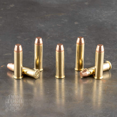 This cartridge features a factory fresh brass casing, certain not to fail in the chamber and good stuff for any handloading enthusiast. Its non-corrosive primer won’t permit rust to bloom inside your revolver, and its clean burning propellant preserves accuracy in between cleanings.