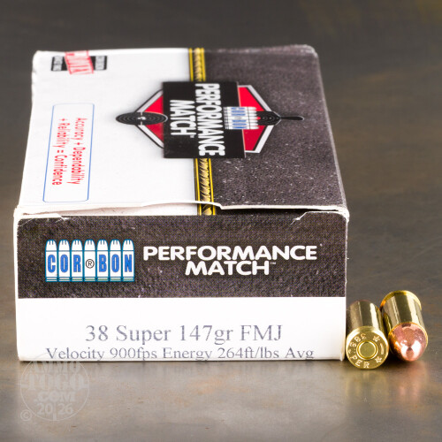 500rds - 38 Super Auto Corbon 147gr. Performance Match FMJ Ammo Details