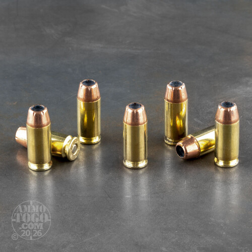 This 500 round bulk pack of .40 S&W will give you plenty of fuel for your carry mags as well as a healthy reserve for consistent range practice or rainy day storage. Remington UMC ammunition aims to offer shooters a low cost option that doesn't skimp on quality components. These cartridges are assembled using clean-igniting Kleanbore primers fitted into new, reloadable brass casings which are loaded with 180 grain jacketed hollow-point (JHP) projectiles.180 grains is a common weight for the .40 caliber and lends a slight smoothness to the sharp recoil while maintaining high velocity and effective terminal ballistics. The UMC JHP projectile design uses a wide mouth cavity with light scoring around its jacket's edges; this construction promotes wide expansion on impact which is intended to prevent over-penetration while producing a large wound channel and delivering optimum energy for personal defense use.