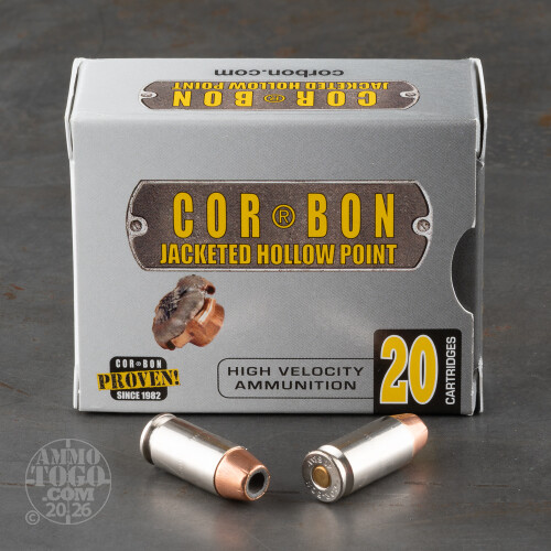 This is .40 S&W Corbon 150gr. Hollow Point Ammo. Like no other, Corbon's JHP loads have proven stopping power. Their JHP loads come loaded with higher velocity and more energy values then their competitors. What you'll get is a bullet traveling faster, but on impact the higher velocity will cause the hollow point to expand into a mushroom shape dispersing its energy into the target. Energy dispersal is the key to COR-BON's proven stopping power. This ammo comes packed in 20rds. per box. 25 boxes per case.