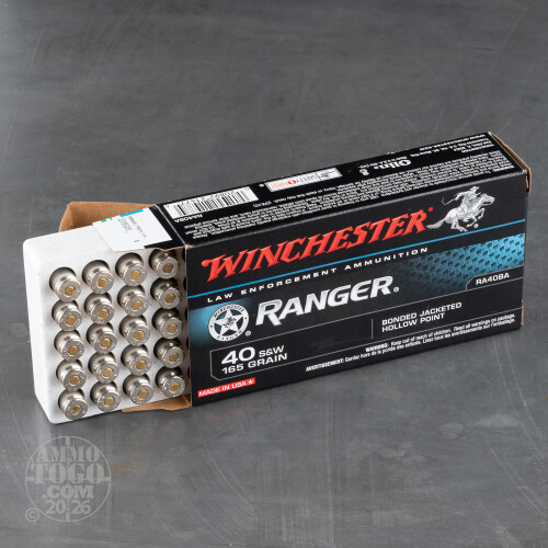 500rds - 40 S&W Winchester Ranger 165gr. Bonded HP Ammo Details