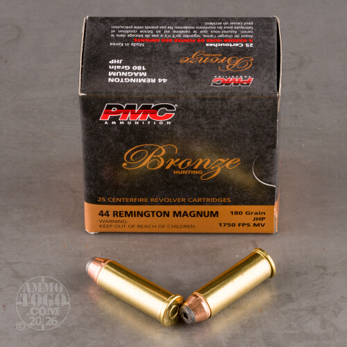 This is 44 Magnum PMC 180gr. Hollow Point Ammo. This ammo is brass cased, boxer primed and 100% non-corrosive. PMC has offered quality ammo for many years and still remains a strong competitor in the target ammo arena. This is premium quality target ammo at an affordable price. It is 500 rounds packed in twenty 25rd. boxes.