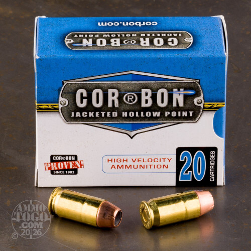 This is 45 ACP Corbon 185gr. +P Hollow Point Ammo. Like no other, Corbon's JHP loads have proven stopping power. Their JHP loads come loaded with higher velocity and more energy values then their competitors. What you'll get is a bullet traveling faster, but on impact the higher velocity will cause the hollow point to expand into A mushroom shape dispersing its energy into the target. Energy dispersal is the key to COR-BON's proven stopping power. These are packed in boxes of 20 rounds, with 25 boxes in a case.