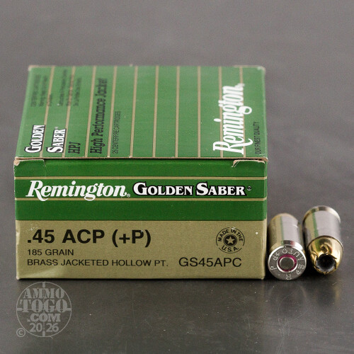 500rds - 45 ACP +P Remington Golden Saber 185gr. JHP Ammo Details
