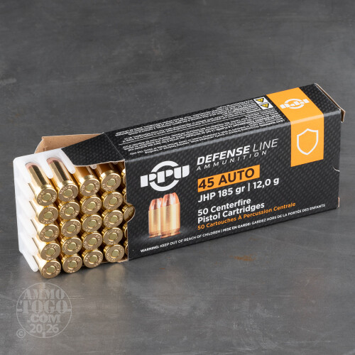 Ideally you would never have to purchase ammunition that is suited for personal protection, but that’s just not the world we live in. It is not only important that you keep an effective cartridge in your everyday carry, but that you train a lot with it as well -- there is no other way to learn exactly how it performs, which you’ll wish to be thoroughly acquainted with should the time come when you are forced to draw your pistol.These 500 45 ACP rounds by Prvi Partizan are priced so that you can comfortably spend a lot of time with them at the range. Still, they are extremely effective at neutralizing a human-sized threat. This round has a relatively light 185 grain projectile, and its hollow point will cause it to widen out as it penetrates a soft target to better its chance of striking a vital and lessen its chance of dangerously overpenetrating. The bullet’s semi-jacket not only fortifies it for more reliable penetration, but bears notches so that it may control the fashion in which the bullet expands.
