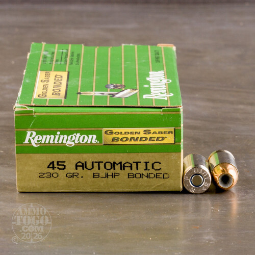 500rds - 45 ACP Remington Golden Saber Bonded 230gr. BJHP Ammo Details