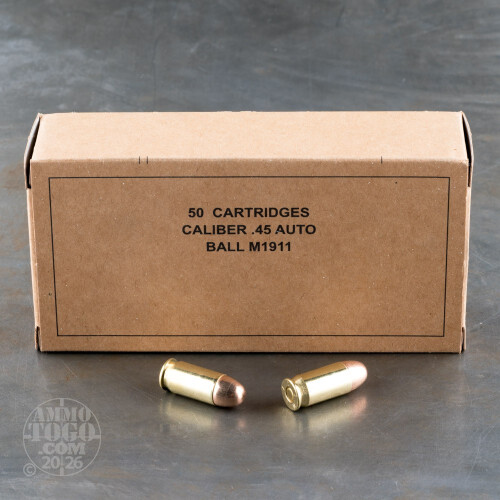 Pick up this 500 round case of cost-effective “Service Grade” hardball ammunition from Winchester for a great time on the range. These mil-spec cartridges fire a 230 grain full metal jacket bullet at a muzzle velocity of 865 feet per second. This is a standard pressure load ideal for new and vintage firearms alike. It uses non-corrosive Boxer primers and brass cases. Like other Winchester ammo, it is loaded in Oxford, Mississippi.-