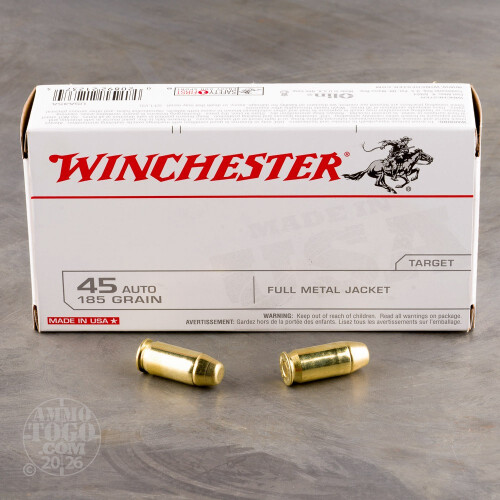 500rds - 45 ACP Winchester USA 185gr. FMJ Ammo Details