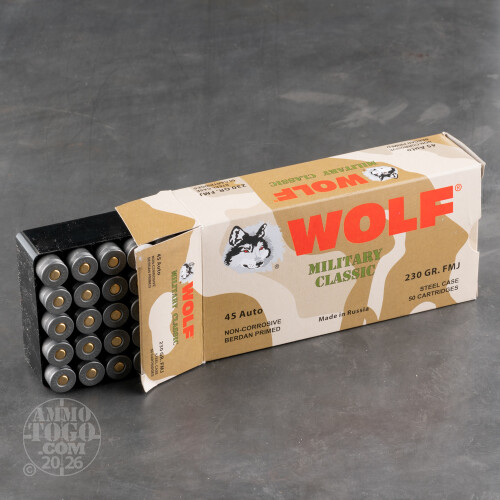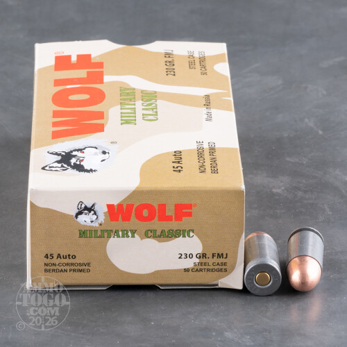 500rds – 45 ACP Wolf Military Classic 230gr. FMJ Ammo Details