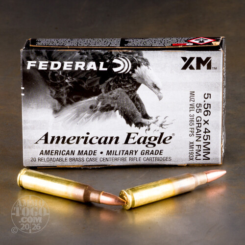 500rds – 5.56x45 Federal American Eagle 55gr. FMJBT XM193 Ammo