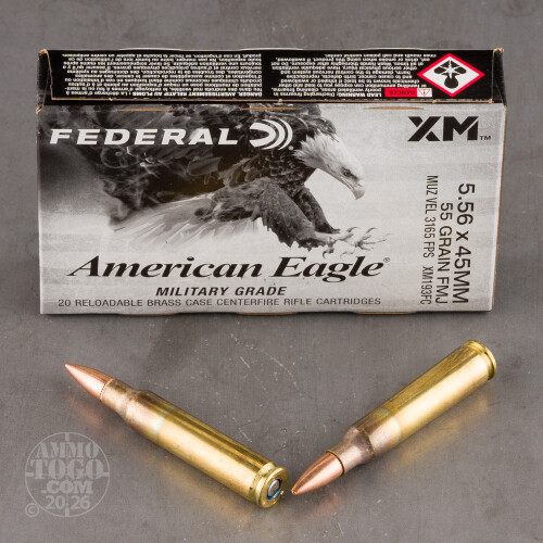 There are two ways to get your grubby paws on 5.56x45mm M193 spec ammo. The first is to join the U.S. Armed Forces, which is nice because they’ll also issue you really tasty crackers and peanut butter to spread on them. The second is to order this American Eagle label ammunition by Federal Premium. Sadly, you’ll still have to purchase crackers and peanut butter separately if you take the second route.This isn’t technically M193 spec ammo. The X prefix indicates that it was made for the commercial market instead of the public sector. Aside from that, it’s the same jazz the Army is playing. Each round is topped off with a steel-free nonmagnetic 55 grain full metal jacket boat tail projectile. It’s fit for action in all 5.56 rifles, including the AR you built using nothing but your own two hands and a pile of AR parts.