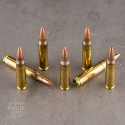 Many of our beautiful customers ask us if this ammo’s cases were previously fired because their shoulders are discolored. We assure them that they are in fact brand new cases – they were heat-treated, like all 5.56 cases should be, but they weren’t polished up afterward for enhanced cosmetics. This ammo is loaded with sealed noncorrosive Boxer primers, and they are reloadable.
