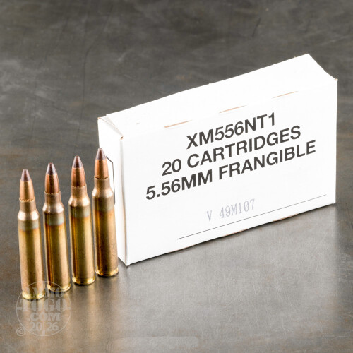 The "XM556NT1" designation of 5.56mm NATO rounds from Federal is well known as a training staple used by various law enforcement facilities and private shooting schools. These cartridges feature top tier components including annealed brass casings from Lake City and non-corrosive primers adorned with moisture-blocking sealant. This combination of features ensures reliable function with any type of weapon system as well as a long shelf-life when put into storage. Each cartridge propels a 50 grain, soft-point frangible projectile.