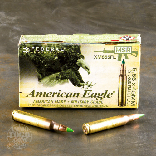 500rds – 5.56x45mm Federal American Eagle XM855 62gr. FMJBT Ammo