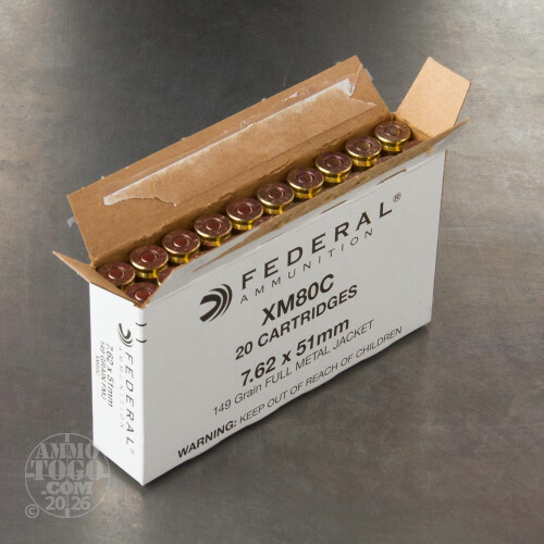 500rds - 7.62 x 51 NATO Federal Lake City XM80C 149gr. FMJ Ammo Details