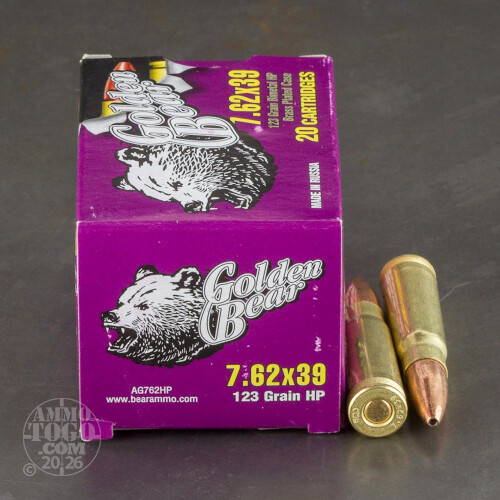 Bulk 7.62x39 Golden Bear 123 Grain Hollow Point Ammo – 500 Rounds