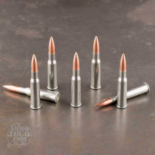 An ideal choice for the shooter who likes to stock up, this package contains 500 rounds of Silver Bear 7.62x54R. Each round is loaded with a 174 grain full metal jacket (FMJ) projectile. Perfect for range training, tactical drills, and target practice, these cartridges function much smoother than standard steel cased ammo. Providing all the characteristics of nickel-plated brass, it’s easy to forget you’re shooting steel cased rounds. Your wallet will tell the difference, however, as these loads are available at a fraction of the cost of brass ammo.