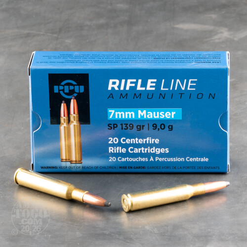 The 7mm Mauser, also known as the 7×57mm, has proven itself time and time again in combat. If you could ask any of Teddy Roosevelt’s Rough Riders about the cartridge, they’d tell you about the unsettling “z-z-z-z-z-eu” its bullet makes as it whizzes menacingly toward its target. George Orwell would also attest to the 7mm Mauser’s efficacy, as he too would have witnessed it firsthand during the Spanish Civil War. You’ll not find the old round inside of combat anymore, but it has maintained some popularity among hunters -- what was good enough to take on Teddy and George is certainly appropriate for hunting deer and boar.This round has a 139 grain soft point projectile. The bullet’s jacket protects against bore fouling and promotes certain penetration, and its exposed core causes that jacket to peel away to create devastating expansion. A Prvi Partizan round further offers a reloadable brass casing, as well as a primer which won’t produce caustic residues when ignited that would have harmed your action.