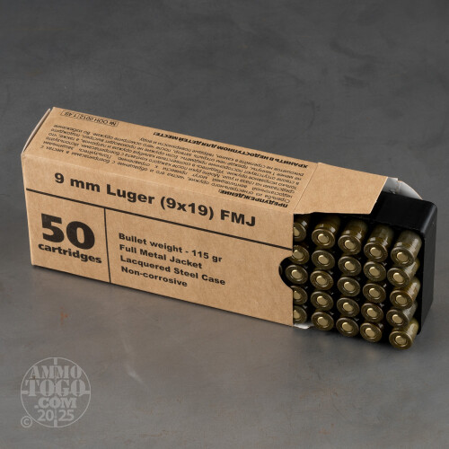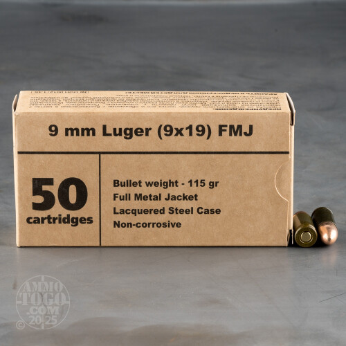 This round’s 115 grain FMJ bullet has what is known as a “bimetal” jacket. It does have a very thin layer of copper on its exterior to reduce barrel fouling, but it’s predominantly made out of soft steel. A bimetal jacket won’t harm a pistol’s barrel, although you can count on it to attract a magnet.