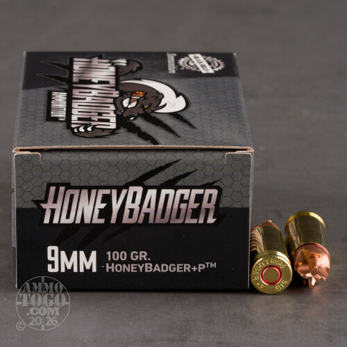 500rds – 9mm +P Black Hills 100gr. HoneyBadger Ammo Details