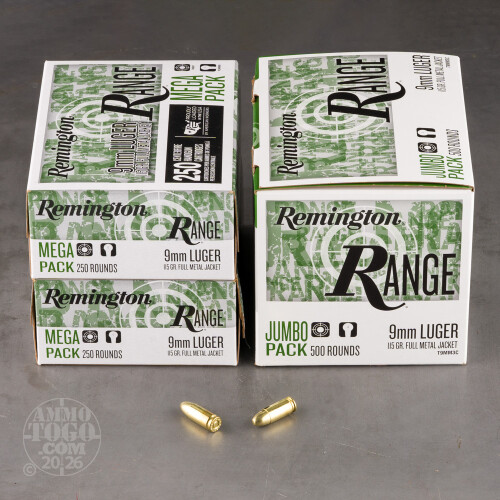 500rds – 9mm Remington Range 115gr. FMJ Ammo Details