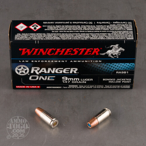 500rds – 9mm Winchester Ranger One 147gr. JHP Ammo Details