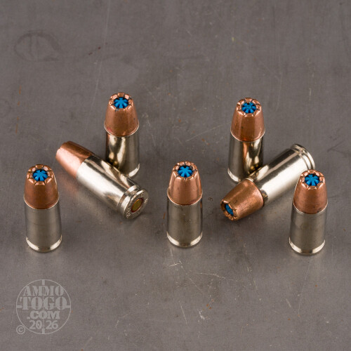 Winchester seats this round’s 147 grain jacketed hollow point in a premium nickel-plated brass case. It’s reloadable, resistant to feeding jams, easier to see in poorly lit environments, and better protected against corrosion resulting from exposure to water and oxygen.