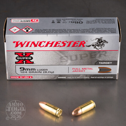 500rds – 9mm Winchester Super-X 124gr. FMJ Ammo Details