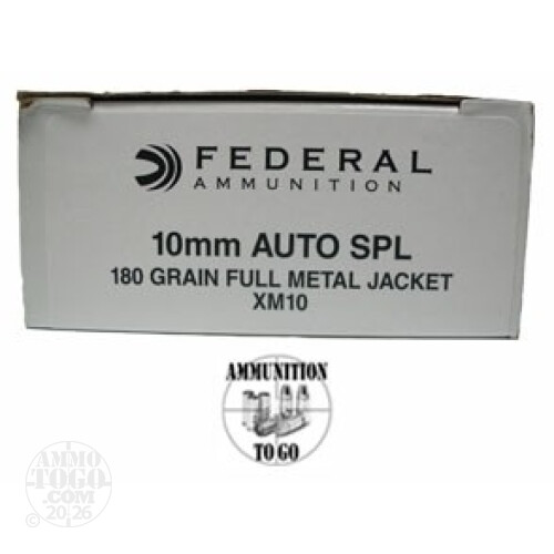 This is .10mm Federal 180gr. XM10 FMJ Ammo. This ammo is U.S. Military overrun ammunition. It is comparable to the American Eagle 10mm round. It is brass cased, boxer primed, non-corrosive and 100% reloadable. This ammo comes packed in 50 round boxes.