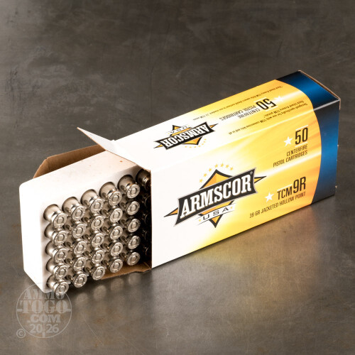 50rds - 22 TCM 9R Armscor USA 39gr. JHP Ammo (Not For Rifles)