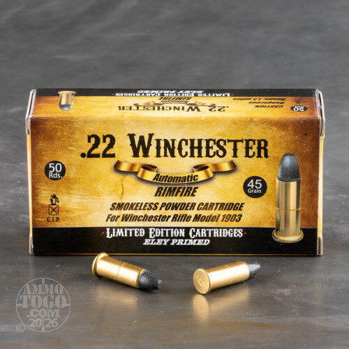 This is 22 Winchester Automatic Aguila 45gr. Lead Nose smokeless powder cartridges for Model 1903 Winchester rifle. This ammo is rare and we currently have a small amount to offer to our customers. Don't miss out on your chance to buy some while it is available! This ammo comes packed in 50 round boxes.