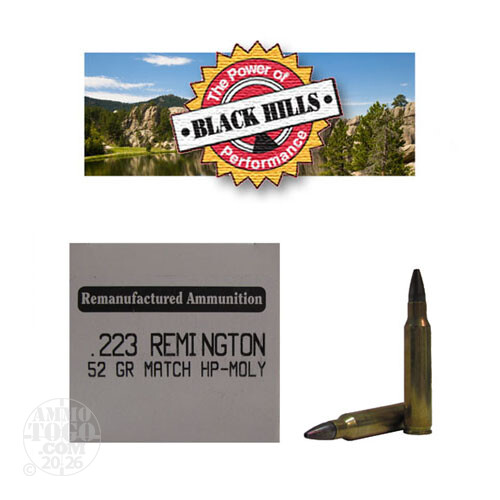 50rds - 223 Black Hills 52gr. Remanufactured Seconds Match HP Moly Ammo Details