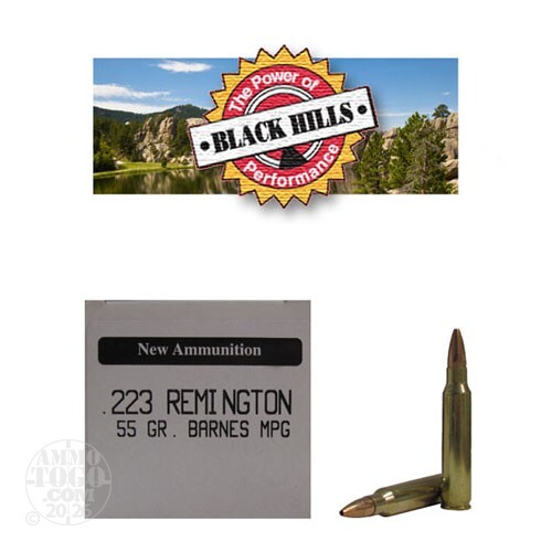 50rds - 223 Black Hills 55gr. New Seconds Barnes MPG HP Ammo Details