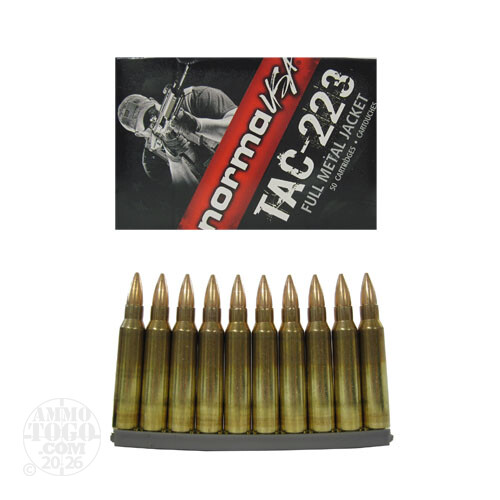 50rds - .223 Norma TAC-223 55gr. FMJ-BT On Clips Ammo