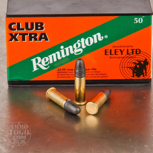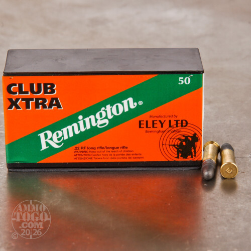 This package contains 50 rounds of Remington Eley Club Xtra .22LR ammunition. Each cartridge is loaded with a 40 grain graphite-coated antimony lead alloy projectile. Designed for serious shooting up to 50 meters, this ammo is an excellent choice for serious rimfire hunters and club competitors.