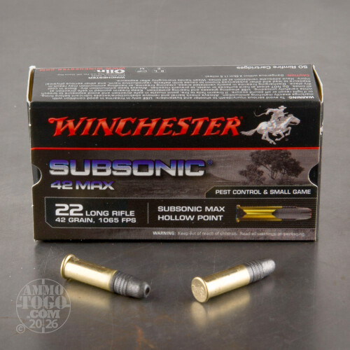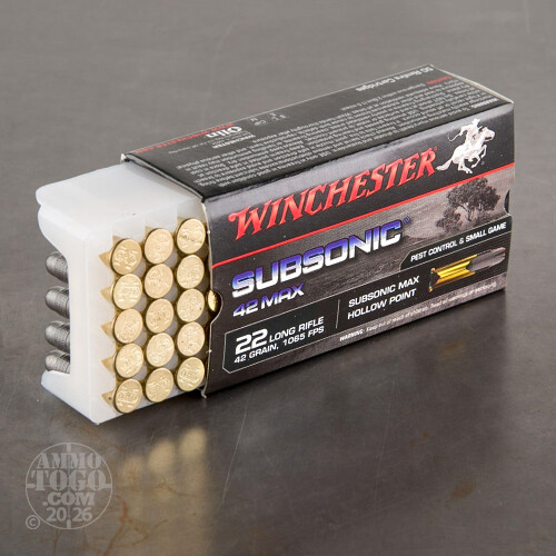 50rds - 22LR Winchester Subsonic 42 Max 42gr. Subsonic HP Ammo Details