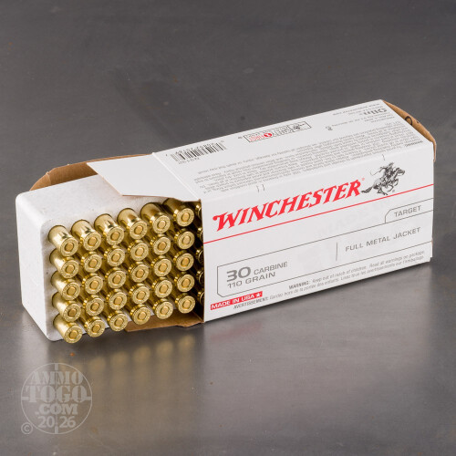 50rds – 30 Carbine Winchester USA 110gr. FMJ Ammo Details