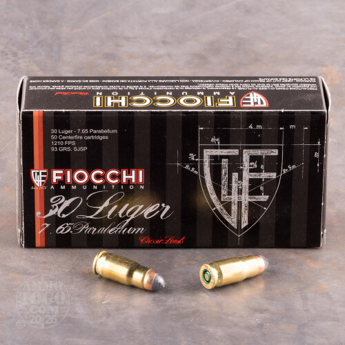 This is 30 Luger / 7.65 Fiocchi 93gr. Soft Point Ammo. This ammo is manufactured by fiocchi in Italy, and is excellent quality ammo. I have shot many rounds of this ammo and I am very pleased with the way it functions. It is clean and accurate. This ammo is brass cased, non-corrosive and 100% new factory fresh. This is some excellent target or hunting ammo for the price. This ammo comes packed in 50rd. boxes.