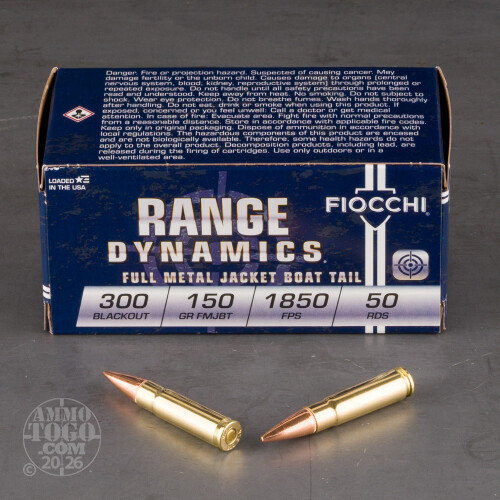 50rds - 300 AAC BLACKOUT Fiocchi 150gr. FMJBT Ammo