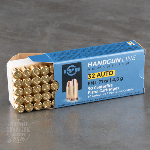 This package contains 50 rounds of .32 Auto ammunition. Each round is loaded with a 71 grain full metal jacket (FMJ) projectile. These general purpose loads are suitable for use in all auto loading pistols, providing excellent feeding, zero expansion, and impressive penetration. Delivering incredible accuracy, these affordable rounds are perfect for target shooting and tactical drills.