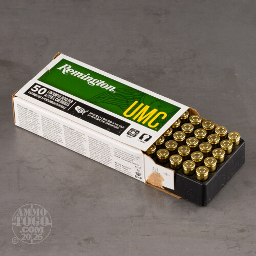 This factory fresh ammunition comes packed in 50-round boxes. Non-corrosive, boxer primed, and brass cased, each cartridge also features a 71 grain full metal jacket (FMJ) projectile. Each round produces a consistent muzzle velocity of 905 feet per second and 129 foot pounds of muzzle energy.