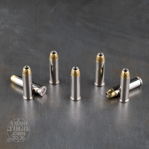 If you’re after a 357 Magnum round that’ll give your everyday carry the explosive and reliable performance it needs, then you need look no further than this little firecracker from Remington’s Golden Saber line of ammo. Its 125 grain bullet sports a wide hollow in its tip, which along with the spiral cut serrations around its brim enables it to expand devastatingly within soft targets. The bullet’s jacket is made of cartridge brass rather than copper alloy, a harder material which enables it to burrow through several types of medium barriers en route to its destination.This round’s brass casing is plated in sleek nickel, which promotes reliable cycling and makes it more visible in darkened environments. Speaking of the dark, this round’s special propellant is formulated to produce a dim muzzle flash, so should you have to draw your weapon at night time you’ll not be blinded and rendered unable to aim your follow-up shots.