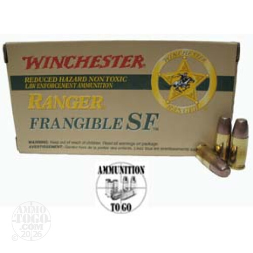 This is 357 SIG Winchester Ranger 100gr. Frangible Ammo. The bullet used in this ammo is manufactured by Sinter Fire, which is considered to be the best frangible bullets on the market today. This ammo is great for indoor and close range shooting. The bullet will disintegrate upon impact. It comes in 50rd. boxes, 500rds. per case.