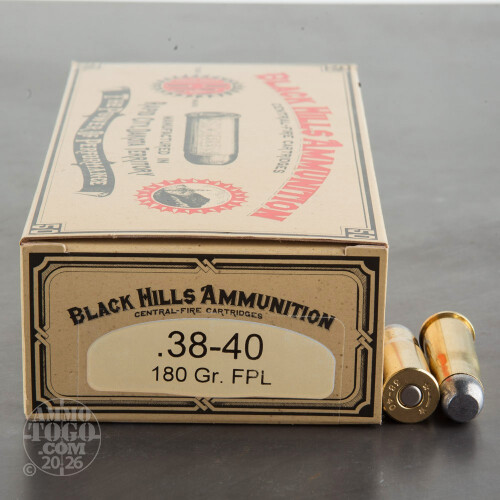 This is .38-40 Black Hills 180gr. Flat Point Lead Ammo. This is new manufactured ammunition. Black Hills Ammunition is highly respected all over the country. Black Hills supplies all four of our military branches with ammunition. There are many Law Enforcement  Agencies using Black Hills nationwide. They only use the best components available. This factory new ammo is very accurate, dependable, 100% non-corrosive, boxer primed and reloadable. Black Hills 38-40 180gr. Flat Point Lead Ammo comes packed 50rds. per box.